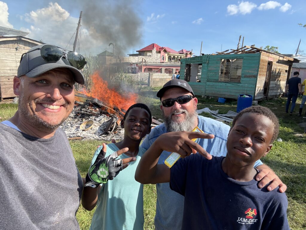 It was a short drive to our first stop, where we were clearing out a damaged house, salvaging what we could, burning the rest, and tearing down the unstable structure. The task was a lot, but we had many hands now with the addition of these young elders and President Smith and Elder Medley. Anderson even recruited two young men, who stood by watching us. We later learned that it was one of the new recruits’ birthdays and gave him some money because he wanted to buy himself a birthday cake.